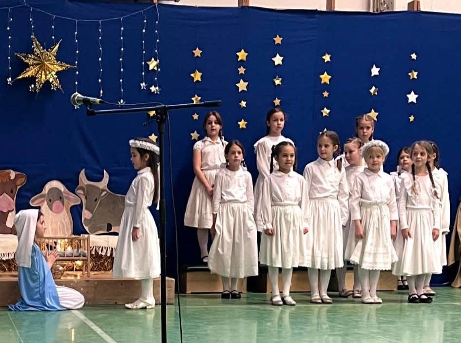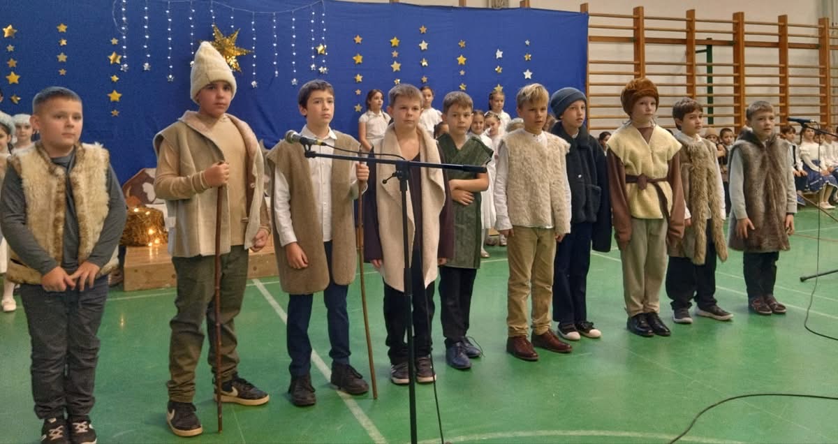 Iskolánk tornacsarnokában a 3. évfolyamos tanulók meghitt karácsonyi előadása segítette az ünnepre való ráhangolódást. A Jézus születését bemutató műsor nagy sikert aratott a pedagógusok és a diákok körében.