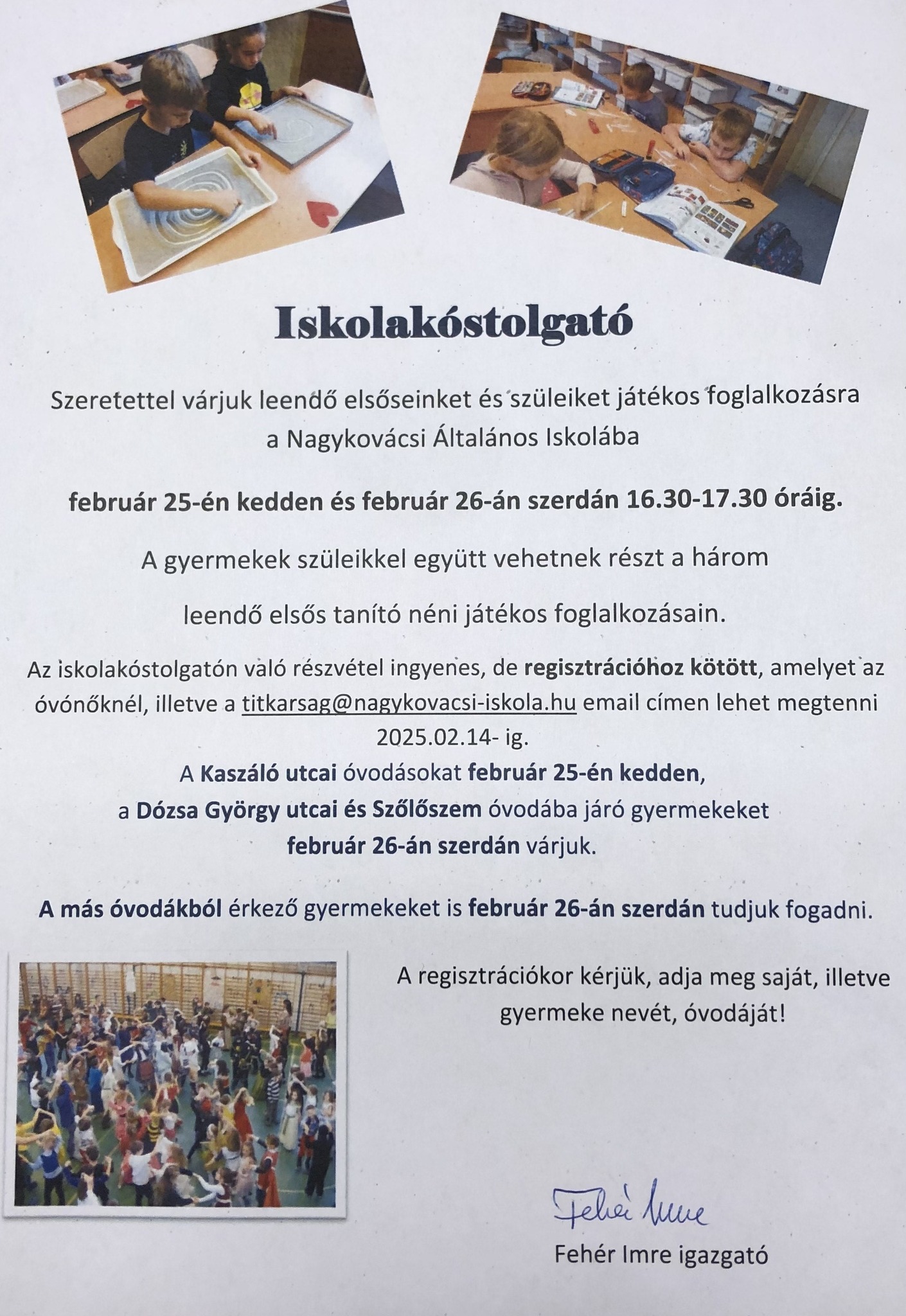A 2025-2026-os tanévben első osztályba lépő gyermekek, valamint a már iskolás tanulók szülei számára az egyházak tájékoztató előadást tartanak a hit- és erkölcstan oktatásának lehetőségeiről és kereteiről.