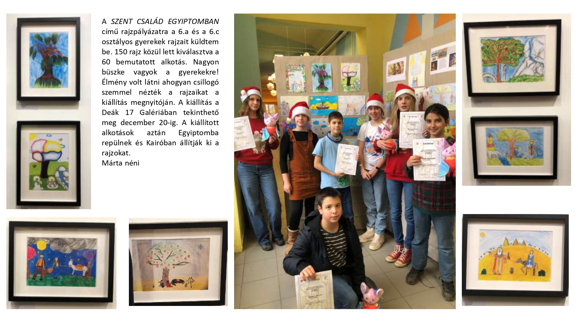 Meszlényiné Ritli Márta rajz- és vizuáliskultúra-tanárnő és igazgatóhelyettes vezetésével iskolánk 6.a és 6.c osztályos diákjai részt vettek egy rajzpályázaton, ahol kreativitásukat és művészeti tehetségüket mutathatták be. A Deák 17 Galériában december 20-ig hét nagykovácsi diák alkotása látható. Külön köszönjük Márta néninek, hogy a gyerekekkel ellátogattak a galériába, és ezzel felejthetetlen élményt nyújtott számukra.